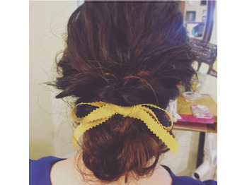 ワンピースが青だったので黄色のリボンを合わせました♪